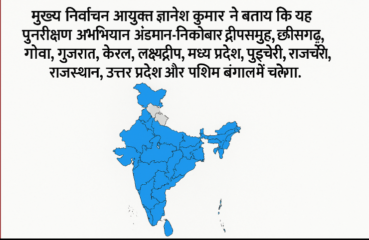 मुख्य निर्वाचन आयुक्त ज्ञानेश कुमार ने 12 राज्यों में विशेष मतदाता सूची पुनरीक्षण अभियान की घोषणा की।Official ECI Press Release, October 27, 2025