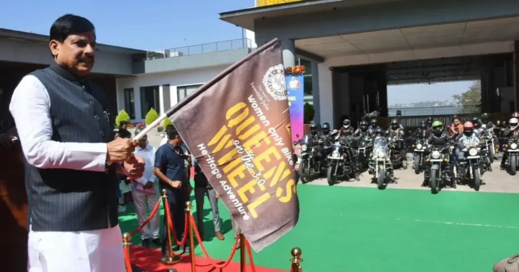 Queens on the Wheels बाइक यात्रा को मुख्यमंत्री डॉ. मोहन यादव ने भोपाल स्थित मुख्यमंत्री निवास से हरी झंडी दिखाकर रवाना किया। इस मौके पर उन्होंने कहा कि प्रधानमंत्री नरेंद्र मोदी के नेतृत्व में देश के साथ-साथ मध्यप्रदेश भी विकास की नई ऊंचाइयों को छू रहा है। उन्होंने कहा कि अंतरराष्ट्रीय महिला दिवस और रंगपंचमी से पहले शुरू हुई यह यात्रा महिलाओं के आत्मविश्वास, साहस और आत्मनिर्भरता का प्रतीक बनेगी।
