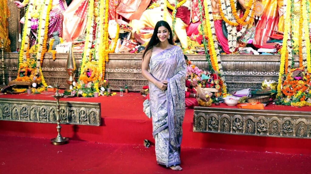 टीवी और फिल्मों में अपनी पहचान बना चुकीं न्यारा बनर्जी ने इस मौके पर पारंपरिक बंगाली साड़ी में शिरकत की। उनका रूप और विनम्र स्वभाव सभी भक्तों को भा गया। उन्होंने मां दुर्गा के चरणों में प्रणाम कर पूजा-अर्चना की और मीडिया से बातचीत में कहा कि दुर्गोत्सव उन्हें शक्ति और सकारात्मक ऊर्जा प्रदान करता है।
