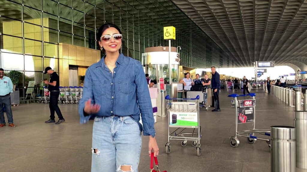 मुंबई एयरपोर्ट पर कैजुअल लेकिन स्टाइलिश लुक में नजर आईं बॉलीवुड एक्ट्रेस Daisy Shah – डेनिम जैकेट और मिनिमल मेकअप ने बढ़ाया ग्लैमर।Source: Mumbai Airport Visuals