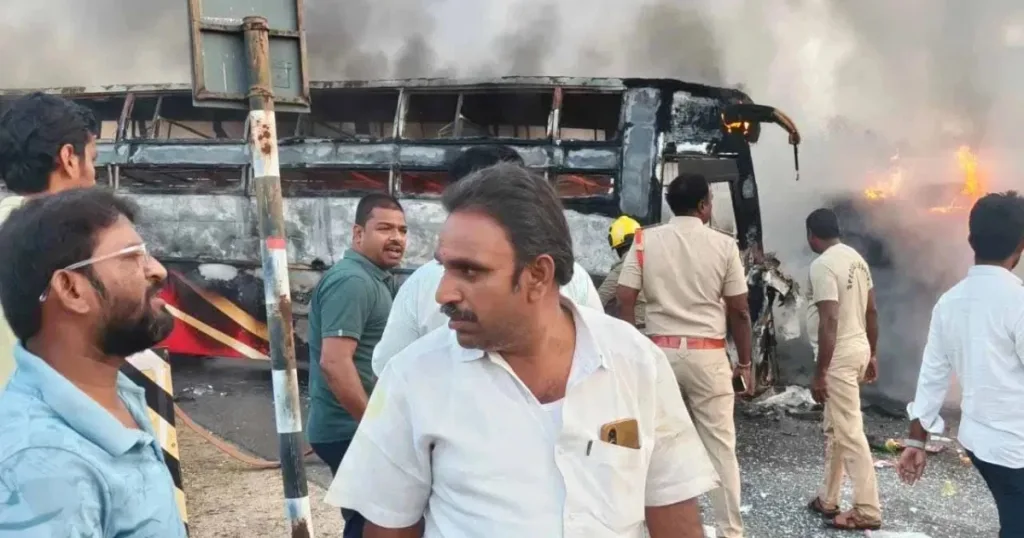 बताया जा रहा है कि यह निजी बस हैदराबाद से पामुर जा रही थी और इसमें करीब 40 यात्री सवार थे। हादसे के बाद स्थिति इतनी भयावह हो गई कि कई लोग बस से बाहर नहीं निकल सके।