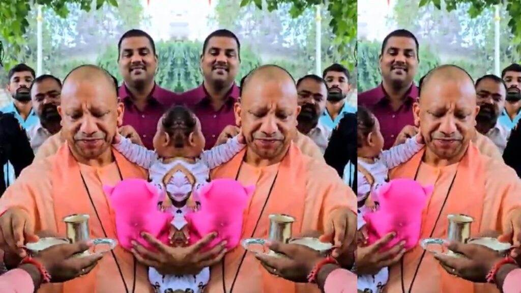 गोवर्धन पूजा पर मुख्यमंत्री योगी का स्नेह भरा पल — बच्चे का अन्नप्राशन संस्कार बना श्रद्धा और भावनाओं का प्रतीक।