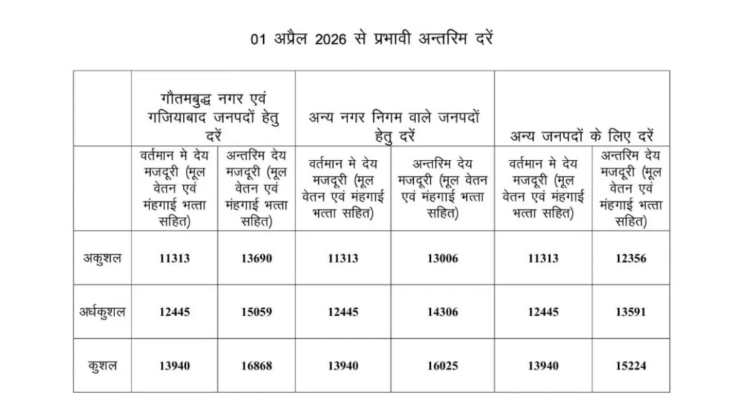 सरकार द्वारा जारी नए आदेश के अनुसार, यह बढ़ोतरी 1 अप्रैल 2026 से पूरे उत्तर प्रदेश में लागू हो गई है। अलग-अलग श्रेणियों के श्रमिकों के लिए न्यूनतम मजदूरी में ₹1000 से लेकर ₹3000 तक की वृद्धि की गई है, जिससे मजदूर वर्ग को बड़ी राहत मिलने की उम्मीद है।